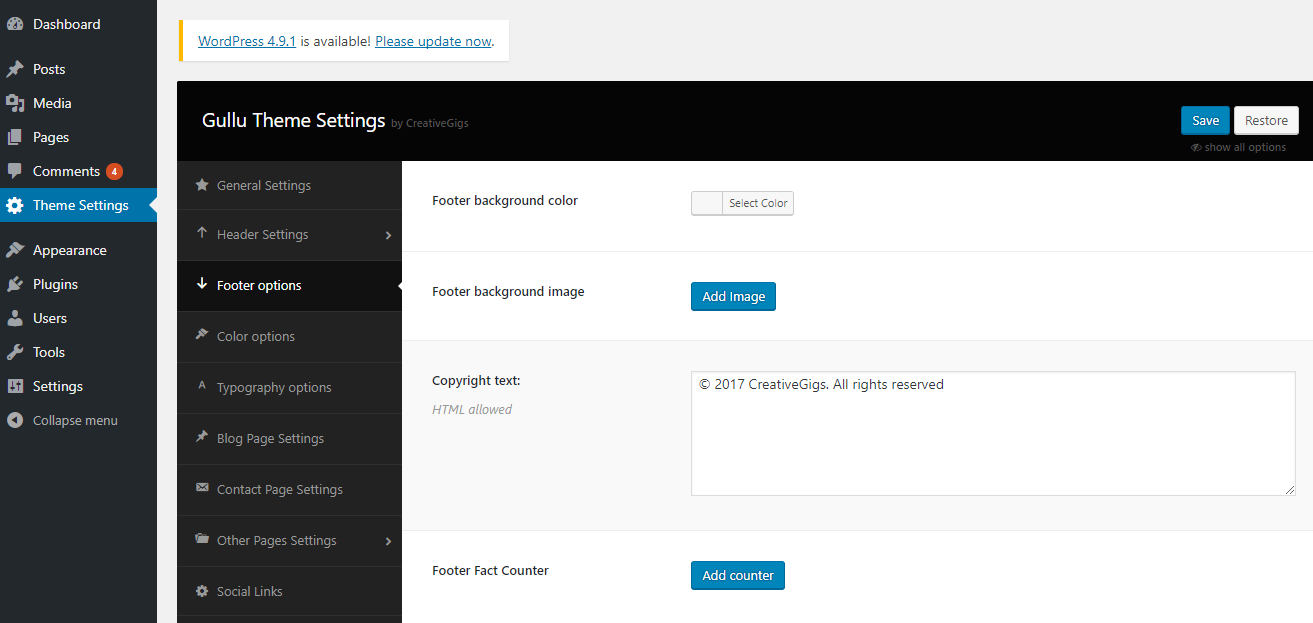 Footer Settings Estimated reading: 1 minute 621 views You can configure the footer area of the theme from the settings option. You will find all relevant section settings to the “Footer” option. Navigate to Theme Options > Footer Settings to go to this settings section. We provided all necessary instructions and descriptions with all the options.